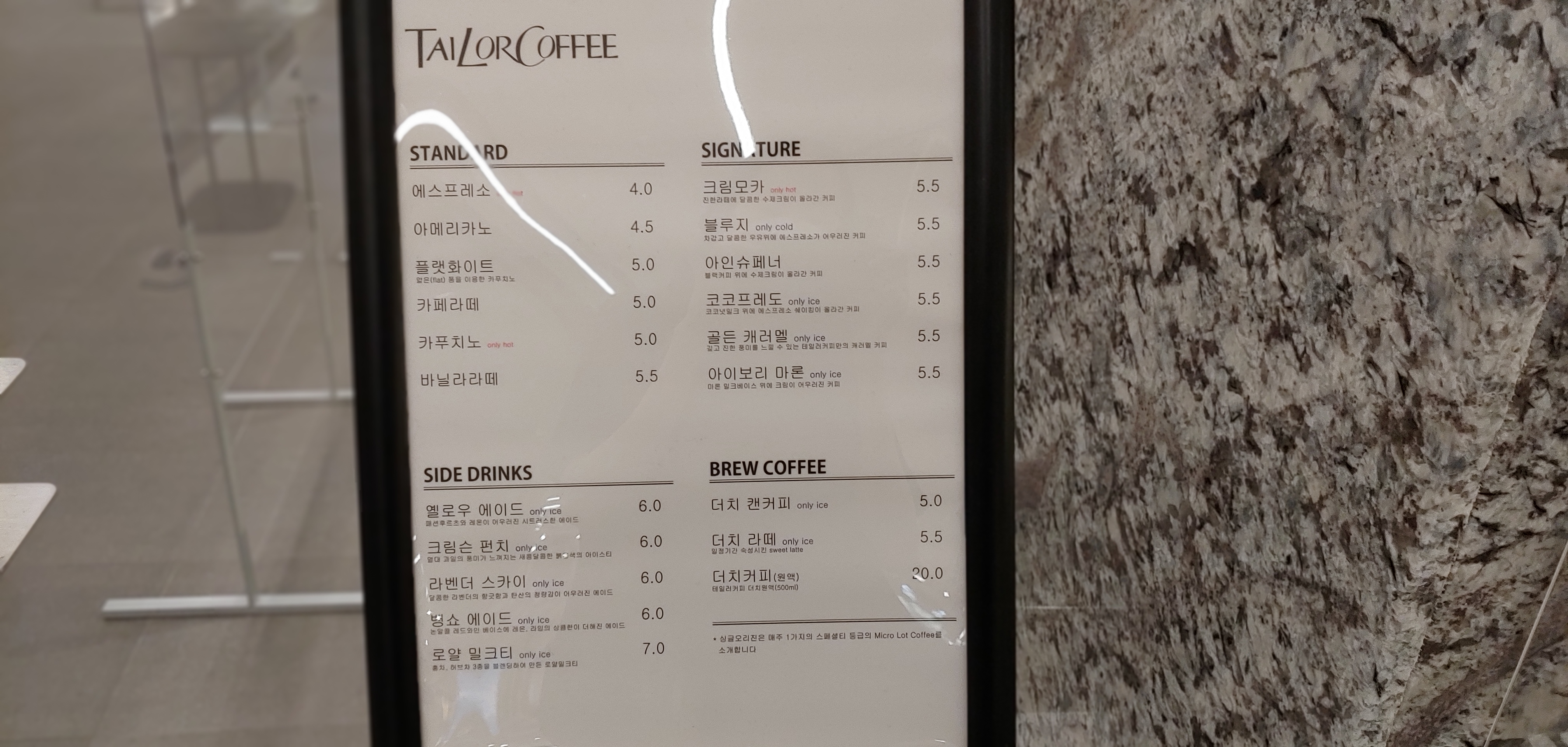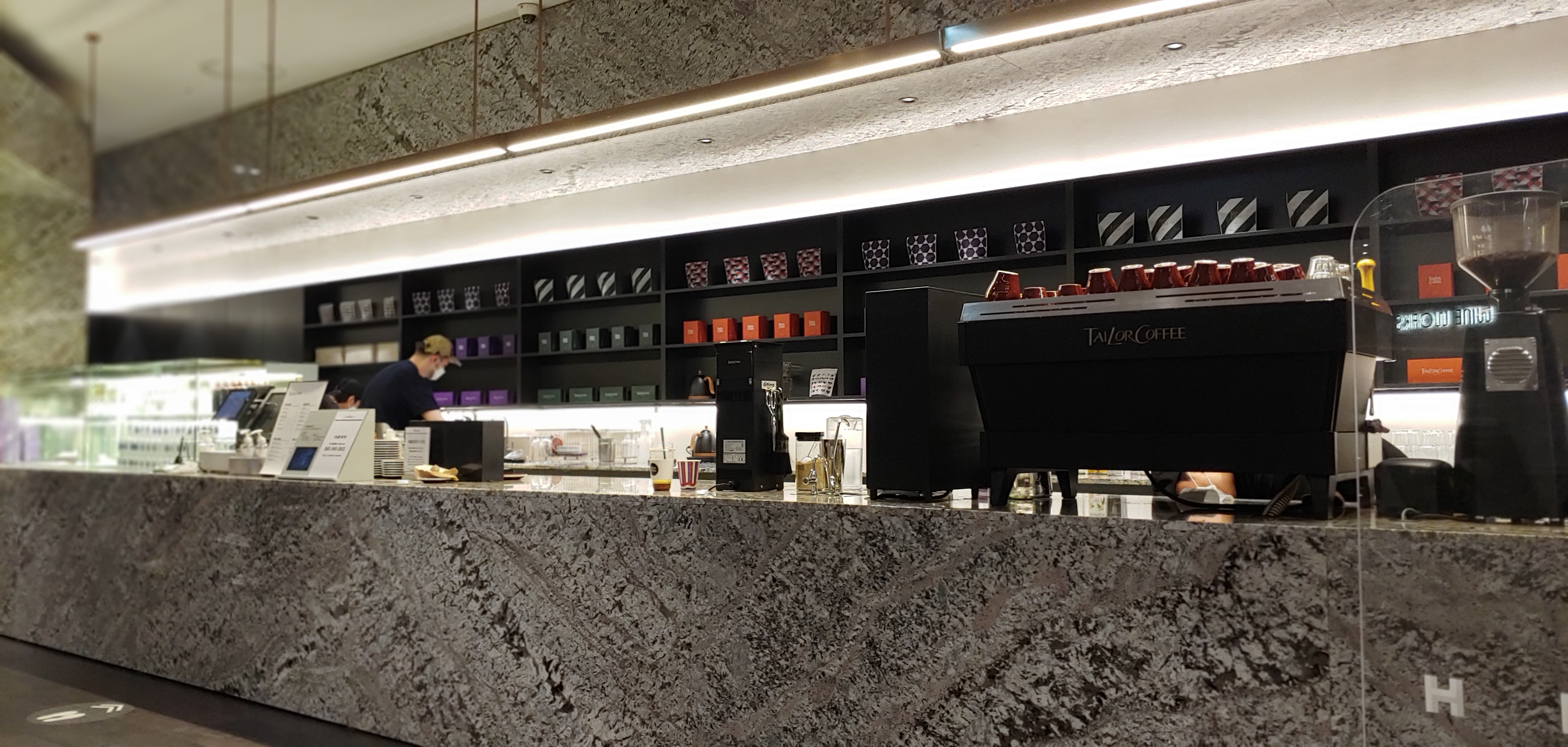 참고로 <테일러커피>는 Wine Works(와인 판매점) 옆 한쪽 구석에 위치하고 있습니다. 일단 매장 위치부터 제 스타일이었어요. 회색 대리석으로 인테리어가 되어 있었는데 너무 더워서 그런지 에어컨이 팡팡 나오는 곳에 대리석에 앉으니 집에 못 갈 것 같더라고요. 너무 시원해서 한 번 앉으니 여기서 헤어 나올 수가 없었습니다...