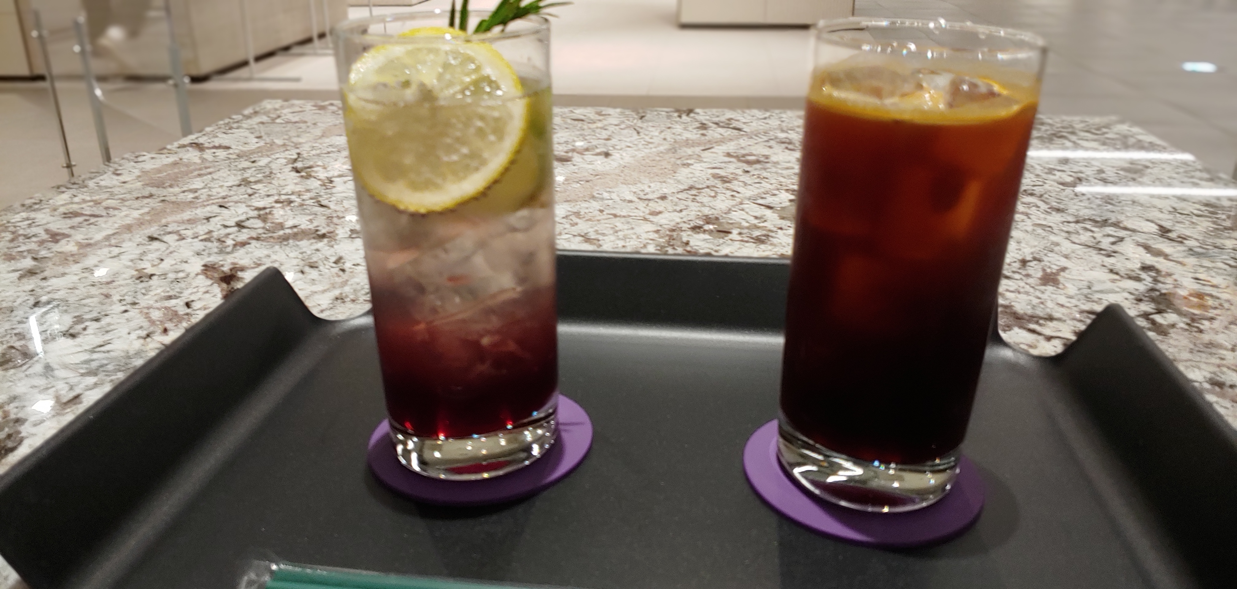 요즘은 카페인마시면 그 효능이 온 마음 다해 힘을 발휘하는지 밤에 잠을 못 자서 아이스 아메리카노 러버인 저는 디카페인 아아를 일행은 뱅쇼 에이드를 주문했습니다. 라벤더 스카이와 고민하길래 점원분한테 둘 중 어떤 음료가 더 인기 있는지 물어보니 뱅쇼 에이드를 추천해주셔서 뱅쇼로 낙점.