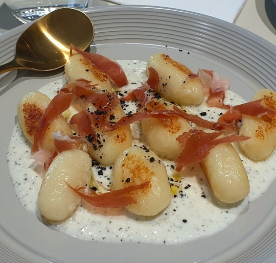 트러플 크림의 풍미랑 사르륵 녹는 뇨끼의 질감이랑 짭짜름한 프로슈토랑 어울림이 좋다.
